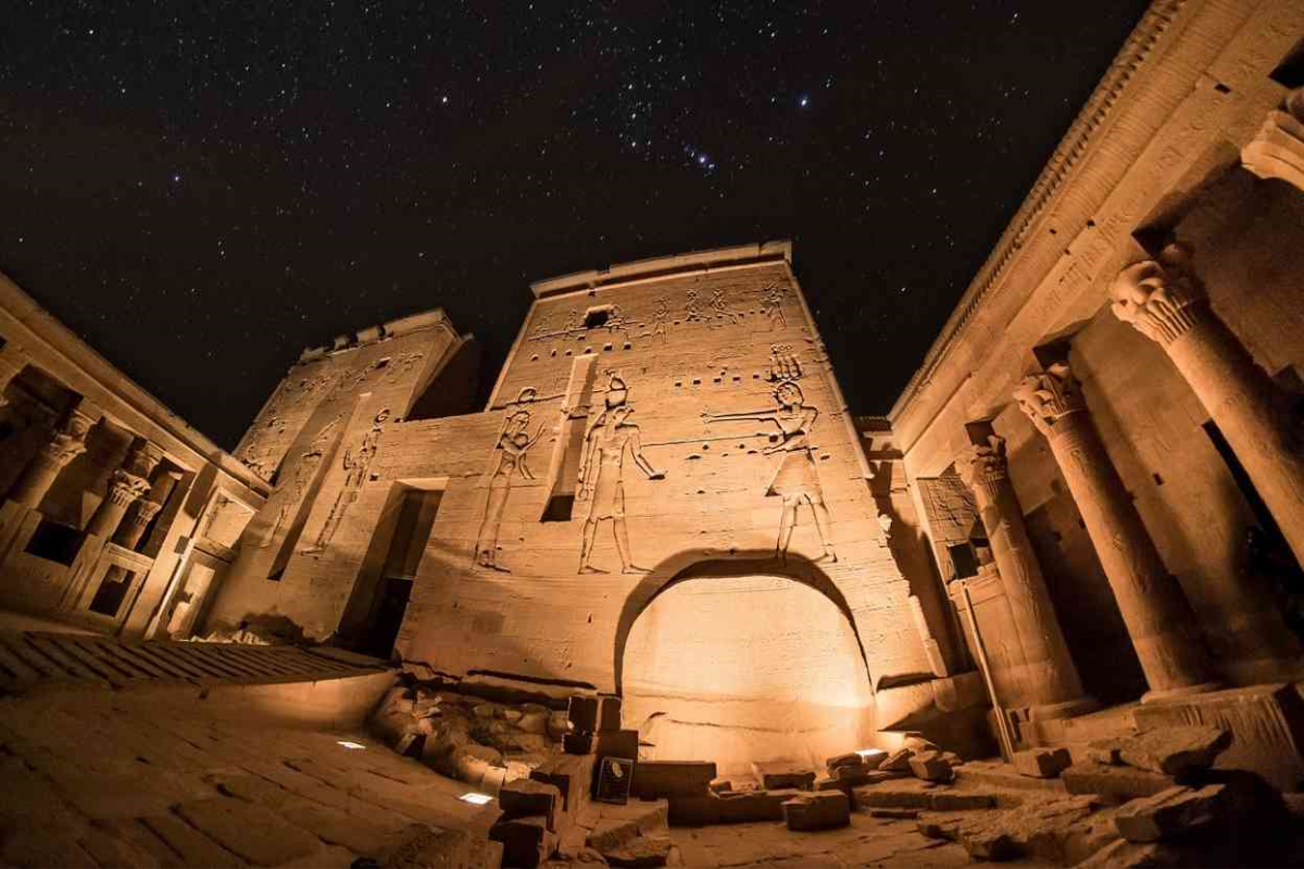 Begin your evening with a comfortable pickup from your Aswan hotel. Travel in an air-conditioned vehicle along the scenic Nile River, as your guide introduces you to the evening’s program and provides historical context about the Philae Temple and its significance in ancient Egyptian civilization.